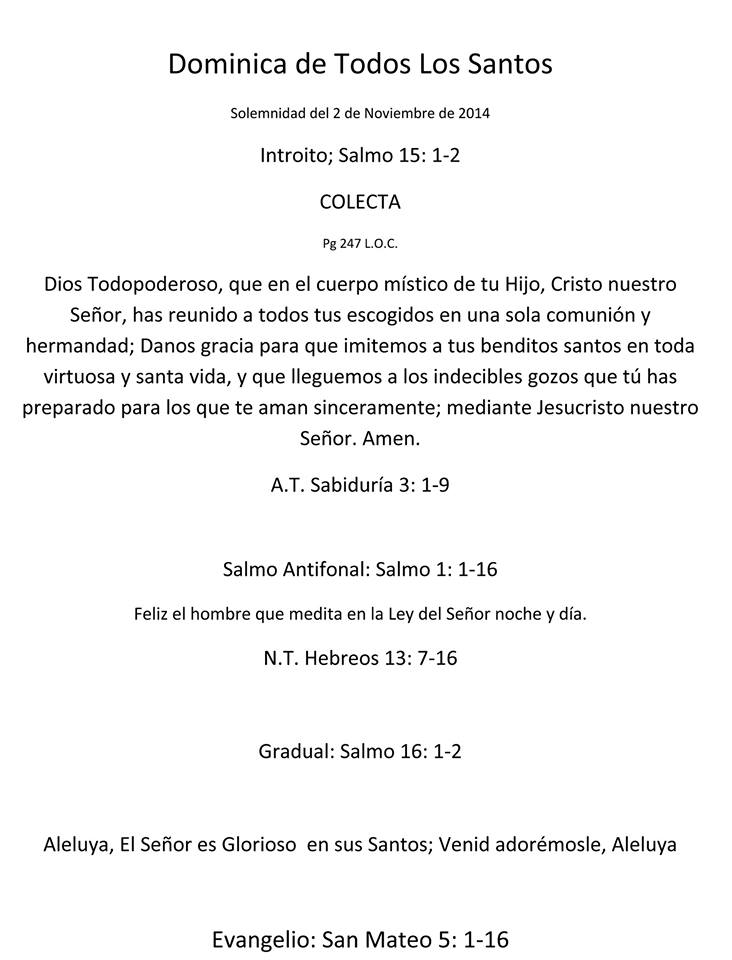 Lecturas Litúrgicas Para La Solemnidad De Todos Los Santos. Domingo 2 De Noviembre Dl 2014