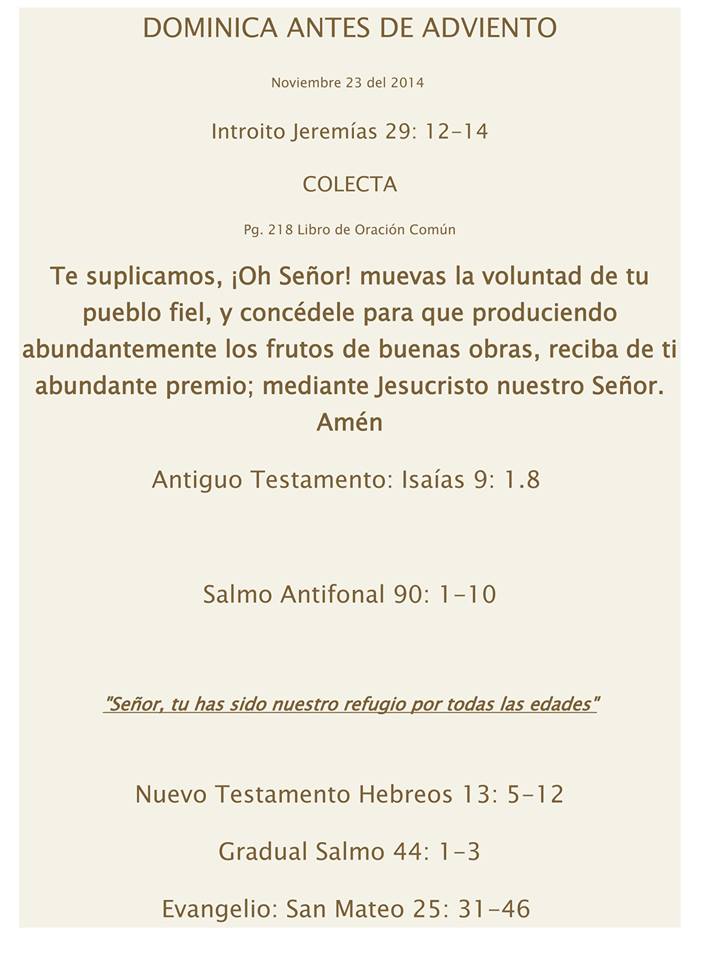 Lecturas Liturgicas Para La Dominica Antes De ADVIENTO, Domingo 23 Noviembre Del 2014