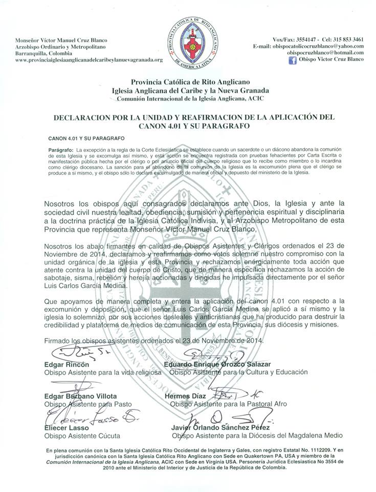 Declaración Por La Unidad Y Reafirmación De La Aplicación Del Canon 4.01 Y Su Paragrafo.