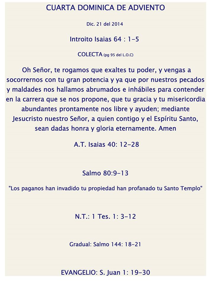 Provincia Católica De Rito Anglicano De America Latinaa: Lectura Liturgica Para La Cuarta Dominica De Adviento