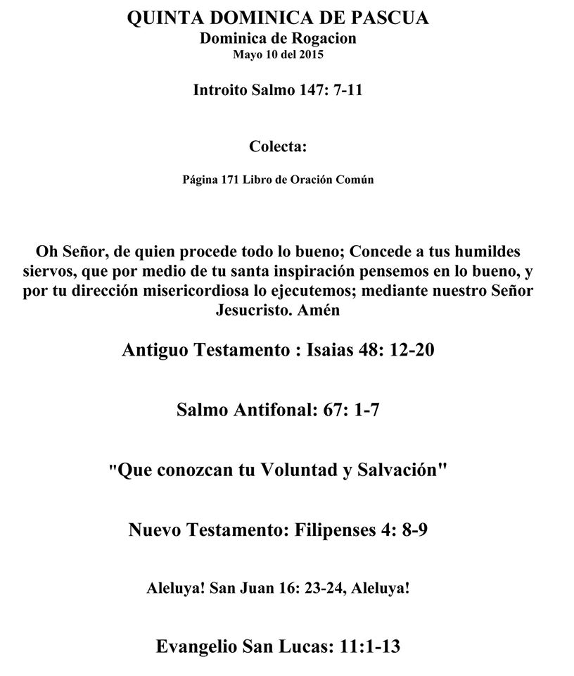 Lecturas Litúrgicas Quinta Dominica de Pascua