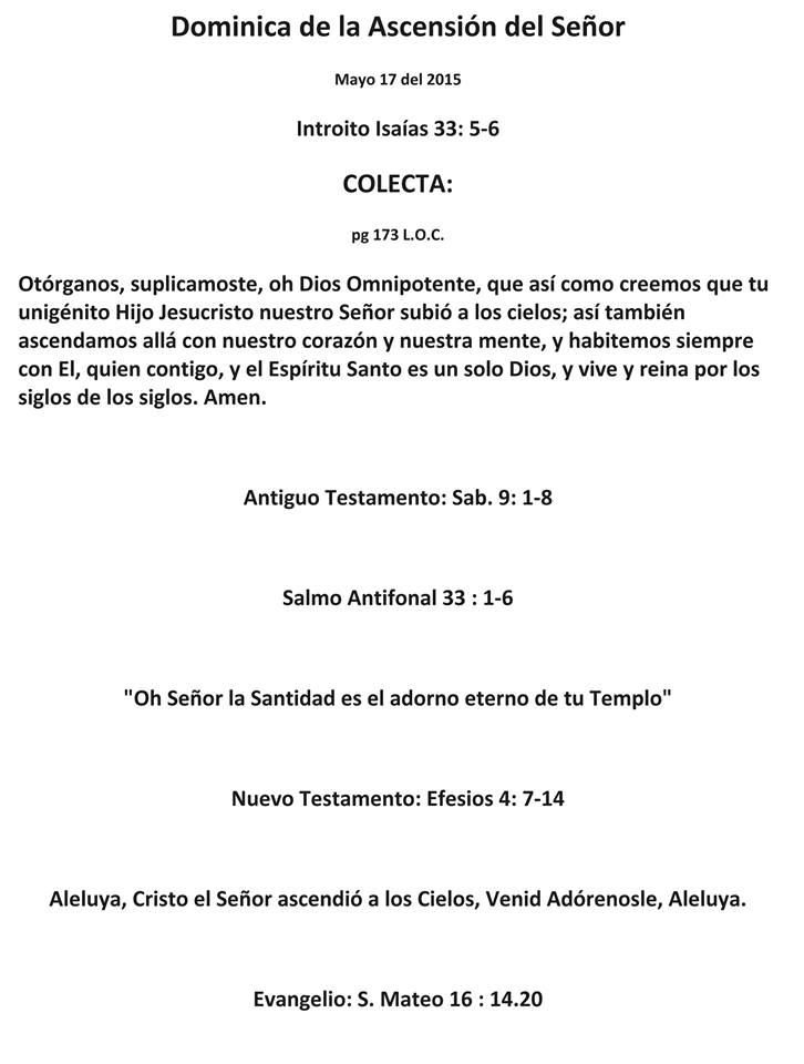 La Dominica de la Ascensión: Mayo 17 del 2015