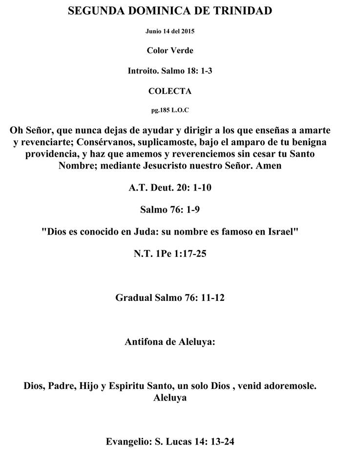 Lecturas Litúrgicas Para La Eucaristía De La Segunda Dominica De Trinidad De Junio 14 Del 2015
