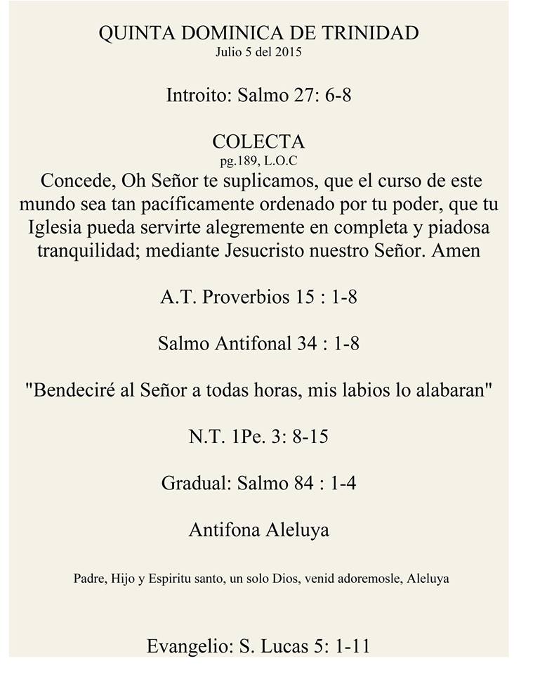 Lecturas Litúrgicas De La Quinta Dominica De Trinidad: 5 De Julio Del 2015