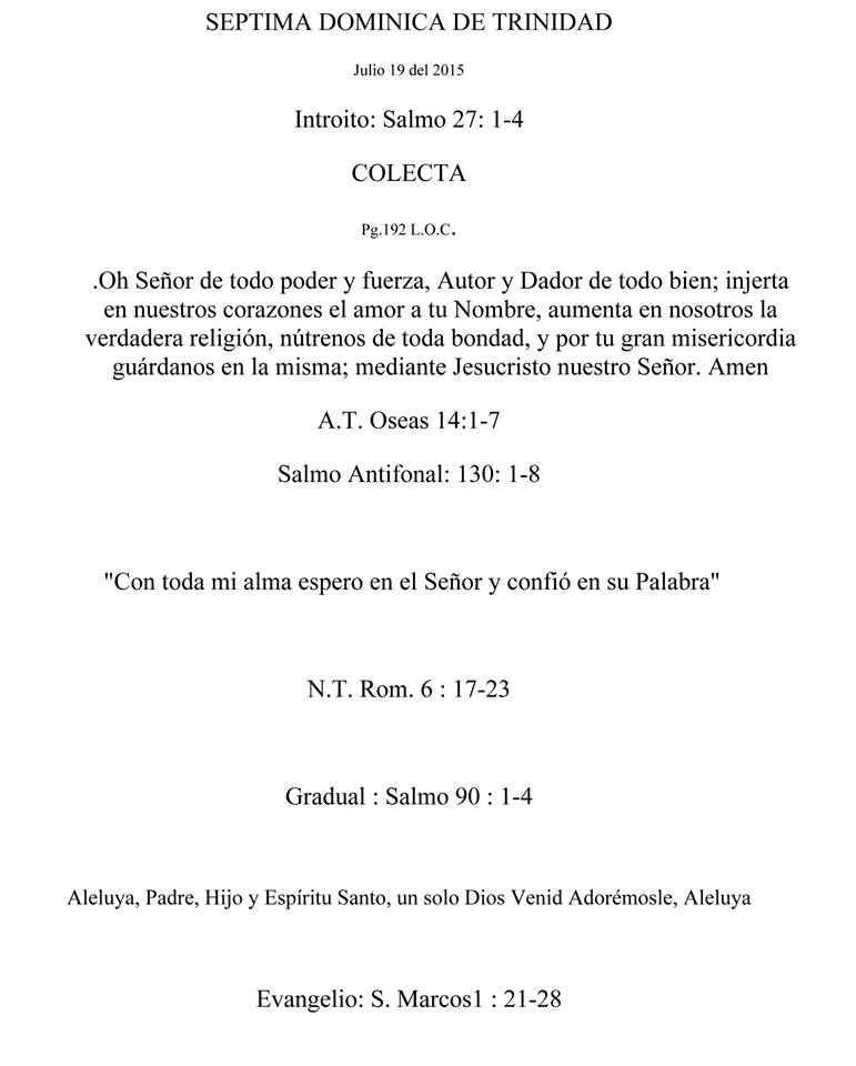 Lecturas Litúrgicas De La Misa De La Septima Dominica De Trinidad: 19 De Julio Del 2015