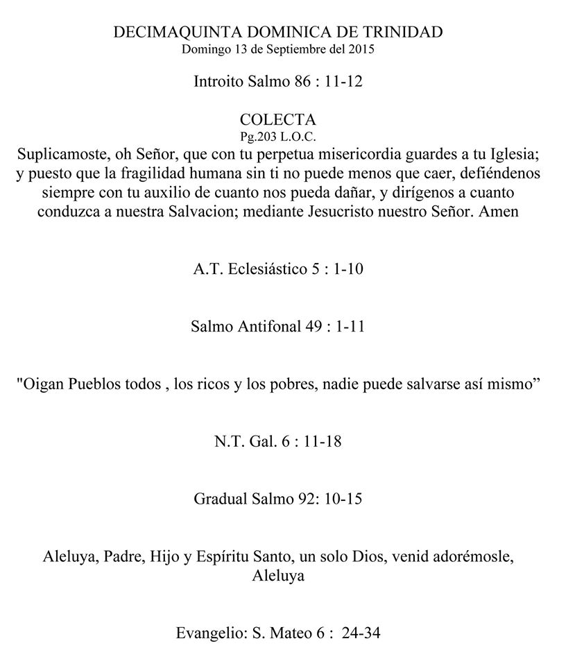 Lecturas Para La Misa Del 13 De Septembre : La Decimaquinta Donica De Trnidad.