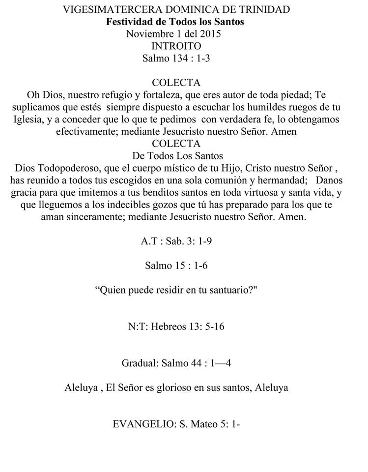 Lecturas Litúrgicas Para La Misa De La Festividad De Todos Los Santos En La Vigesimotercera Dominica Del 2015 Primero De Noviembre