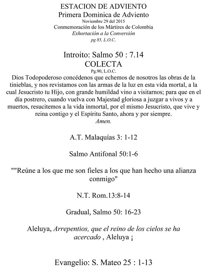 La Estación De Adviento: Primera Dominica De Adviento: Lecturas Litúrgicas. Domingo 29 De Noviembre