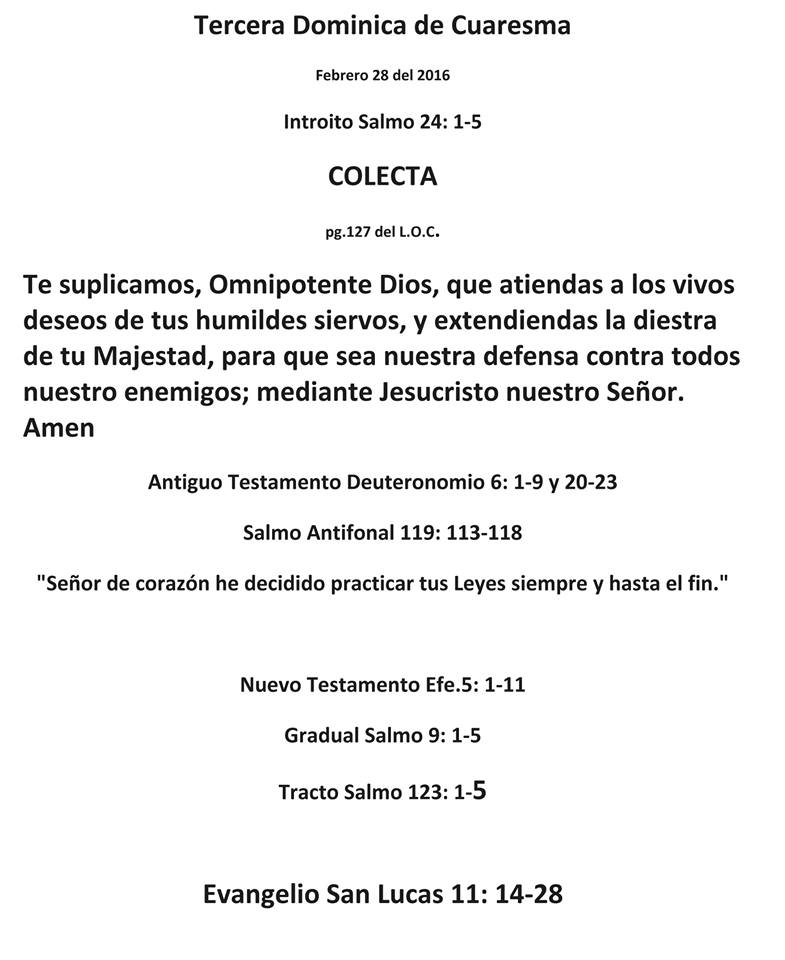Lecturas Liturgicas De La Tercera Dominica De Cuaresma Para La Misa : 28 De Febrero Del 2106