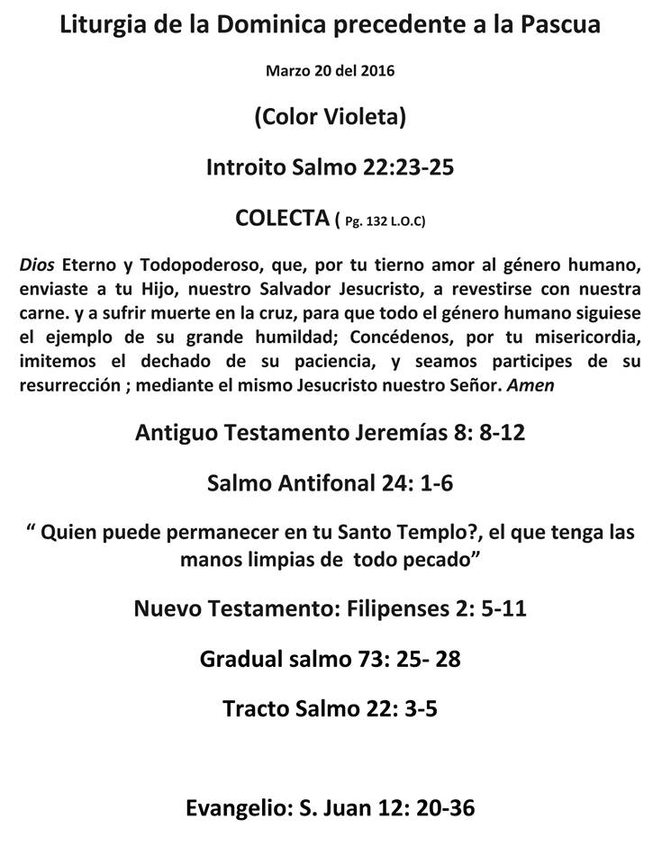 Lecturas Y Liturgia De La Dominica Precdente A La Pascua Con La Bendicion De Ramos En Marzo 20 Del 2016