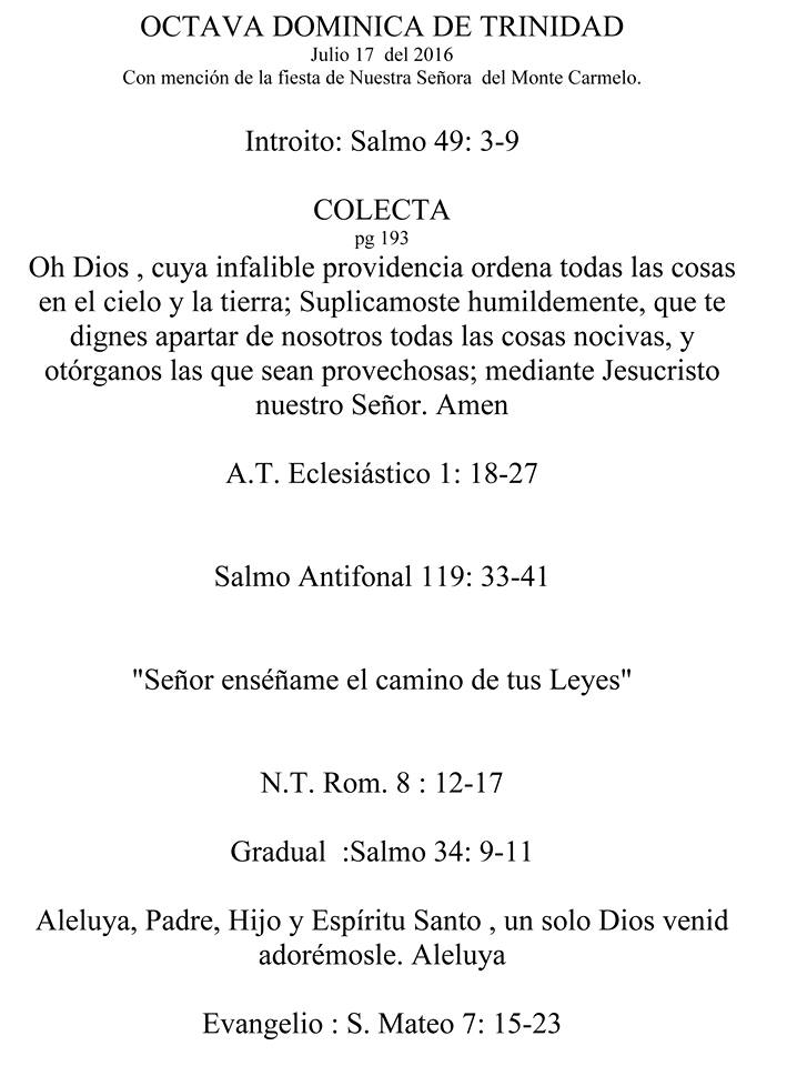 Octava Dominica De Trinidad 17 De Julio De 2016