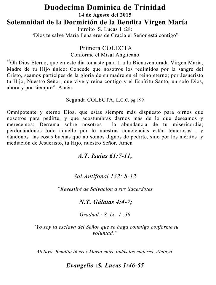 Lecturas Duodecima Dominica De Trinidad, Domingo 14 De Agosto De 2016