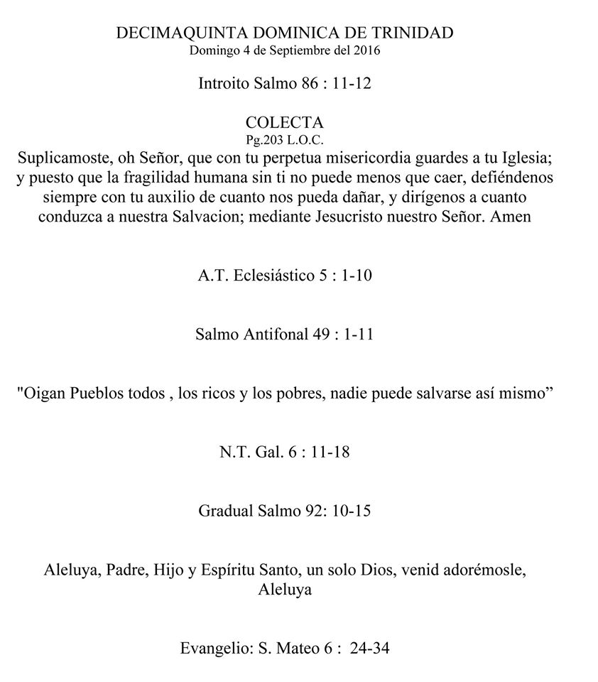 Decimoquinta dominica de trinidad 2016