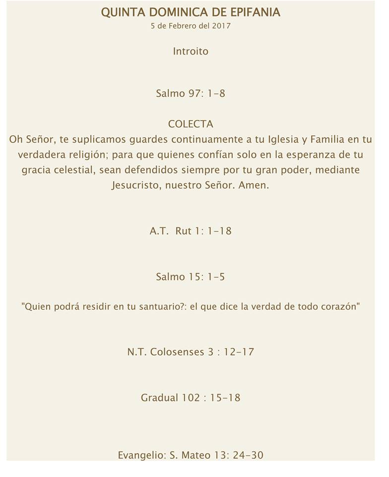 Lecturas De La Misa Quinta Dominica De Epifania